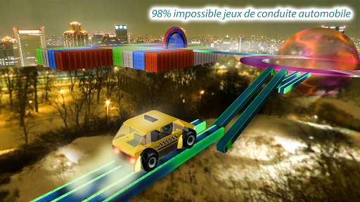 Ce simulateur de voiture impossible est spécialement conçu pour tous ceux qui ont un véritable engouement pour les jeux de course automobile. Alors conduisez comme un vrai coureur sur ces pistes impossibles et dangereuses 2021 et obtenez une expérience de conduite incroyable de jeux de conduite automobile. La voiture épique conduisant sur le ciel bleu dans ces jeux de voiture n'est pas très facile les voies sont vraiment rusées mais restent concentrées et apprécient l'aventure sans fin des jeux de course de voiture. Votre emprise sur les commandes doit être bonne tout en conduisant un simulateur de voiture car ces pistes impossibles à conduire en voiture ne sont pas très faciles à jouer. Montrez de superbes compétences de conduite automobile sur les pistes dangereuses en zigzag et choquez le monde avec de superbes cascades de course automobile au milieu du beau ciel bleu de ces jeux de conduite automobile