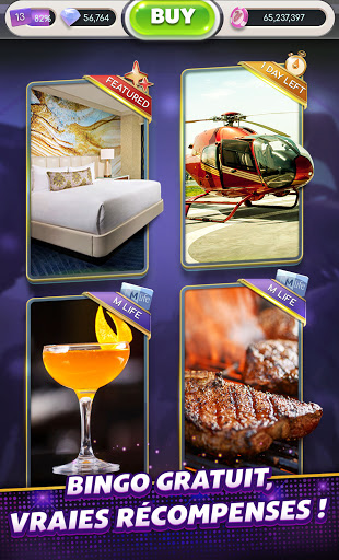 Vivez le frisson du jeu dans ce jeu de bingo aux graphismes avancés ! Profitez de gros boosts et de bonus de bingo, et touchez de gros jackpots. Célébrez les joies du bingo entre amis, remplissez votre carte en premier et progressez dans Las Vegas Strip. Jouez au bingo gratuit et à d’autres jeux dans de vrais casinos tels que MGM Grand, Bellagio, Excalibur et bien d’autres célèbres casinos.