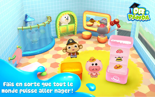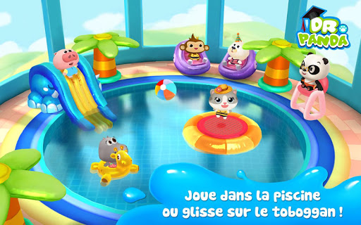 Éclabousse et joue avec cinq bébés animaux plus mignon les uns que les autres dans La piscine de Dr. Panda ! Tu peux plonger dans trois piscines et t'occuper de cinq animaux, tu n'as pas fini de t'amuser ! Amuse-toi à les habiller dans les vestiaires, mange un en-cas près de la piscine, dévale le toboggan ou plonge du haut du navire des pirates pour mettre la main sur le trésor !