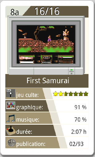 Le 8Bit-Games-Quartett est un jeu des sept familles. Il y a 32 cartes et chacune a cinq différantes qualités: la portée, l'hauteur, la longueur, la largeur et l'année de