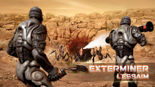 * Explore les zones inconnues sur Mars, attaque l'essaim et sauve les survivants. Lorsque votre progression dans l'exploration atteint 100%, vous pouvez agrandir votre Base et augmenter sa puissance ! Mais faites attention lorsque vous explorez l'extérieur, car vous pourriez tomber sur des vers et des araignées géants !