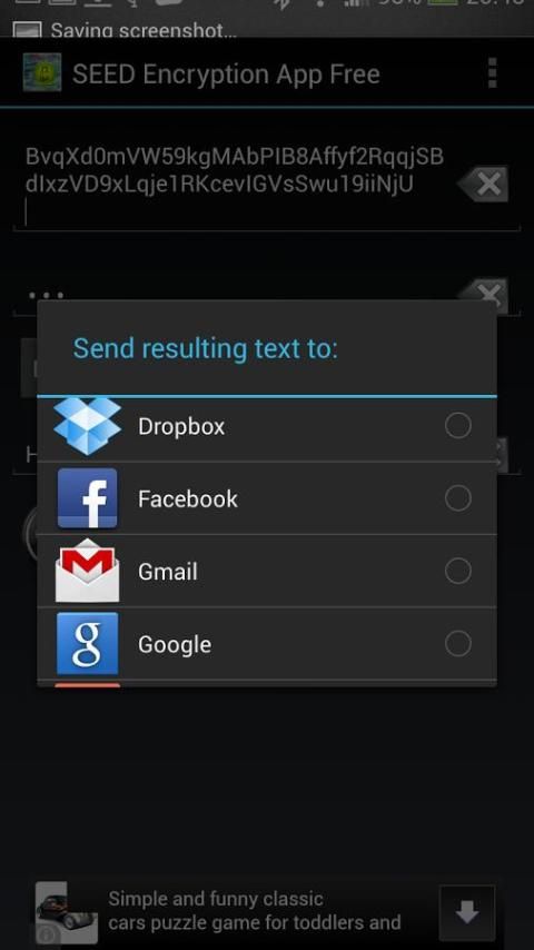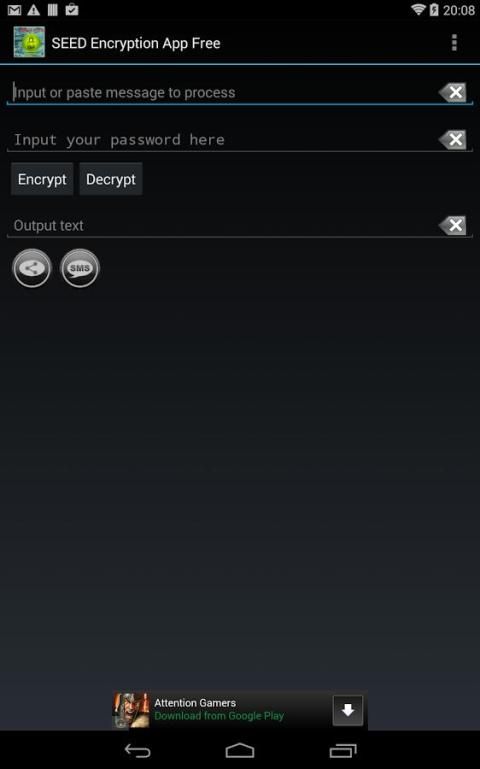 App, इतने पर ई - मेल, एसएमएस, आईएमएस, फेसबुक और के माध्यम से एन्क्रिप्टेड या decrypted संदेश भेज सकते हैं यह नोट में बचाने के लिए या पाठ संदेश प्राप्त कर सकते हैं कि किसी अन्य अनुप्रयोग में इस पाठ खुला.