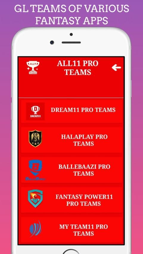 This app consists of GL teams of various fantasy applications like DREAM11.
