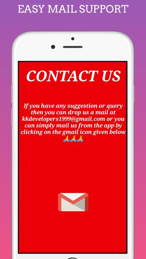 आप हमसे kkdevelopers1999@gmail.com पर संपर्क कर सकते हैं। कृपया हमसे संपर्क करने के लिए स्वतंत्र महसूस करें यदि आपके पास इस ऐप से संबंधित कोई सुझाव या प्रश्न है। यदि आपको किसी अन्य ऐप की जीएल टीमों की आवश्यकता है, तो कृपया हमें मेल करें ताकि हम आपको प्रदान कर सकें सबसे अच्छा उपयोगकर्ता अनुभव।