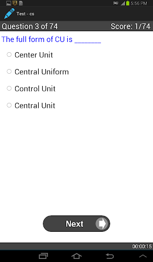 छात्र एक विषय और अध्यायों की सीमा का चयन कर सकते हैं जिस पर वह परीक्षा लेना चाहता है।छात्र यह भी तय कर सकता है कि वह सभी उपलब्ध प्रश्नों (अध्यायों की चयनित सीमा पर) या केवल कुछ प्रश्नों का प्रयास करना चाहते हैं या नहीं।
