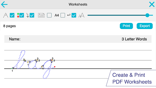 कर्सिव राइटिंग विज़ार्ड के इस मुफ्त संस्करण में अक्षरों, संख्याओं और शब्दों के सबसेट के लिए पूर्ण संस्करण की सभी विशेषताएं शामिल हैं, लेकिन आप अपने शब्दों को जोड़ सकते हैं और आप नहीं हैं और आप नहीं हैंवर्कशीट तक पहुंच।