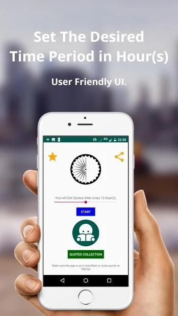 आप समय अवधि को 1 घंटे से 24 घंटे के बीच निर्धारित कर सकते हैं। ऐप न्यूनतम डिजाइन पर विचार करके बनाया जाता है। ऐप आकार को कम करने के लिए ऐप में ऑफ़लाइन मोड में 100 उद्धरण शामिल हैं