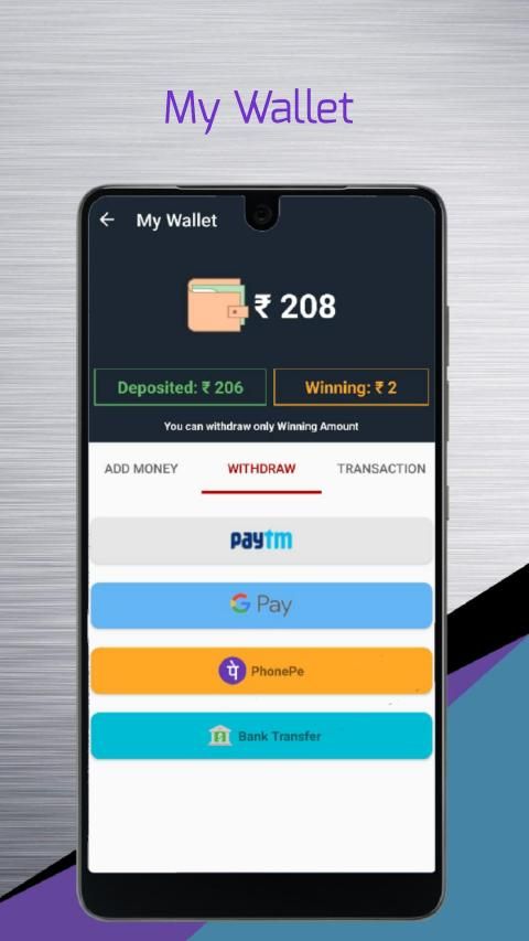 -> Withdraw your winnings directly to Paytm , Google Pay , Phonepe or Bank Account .
