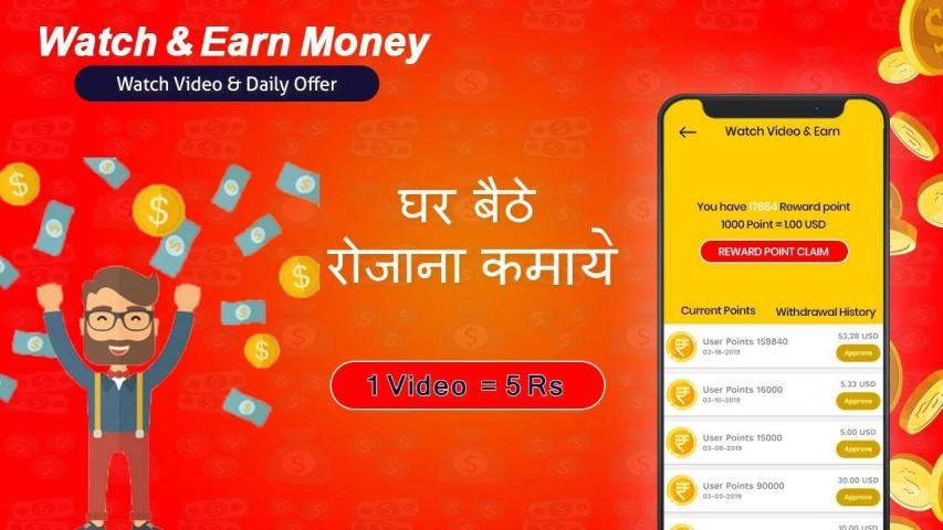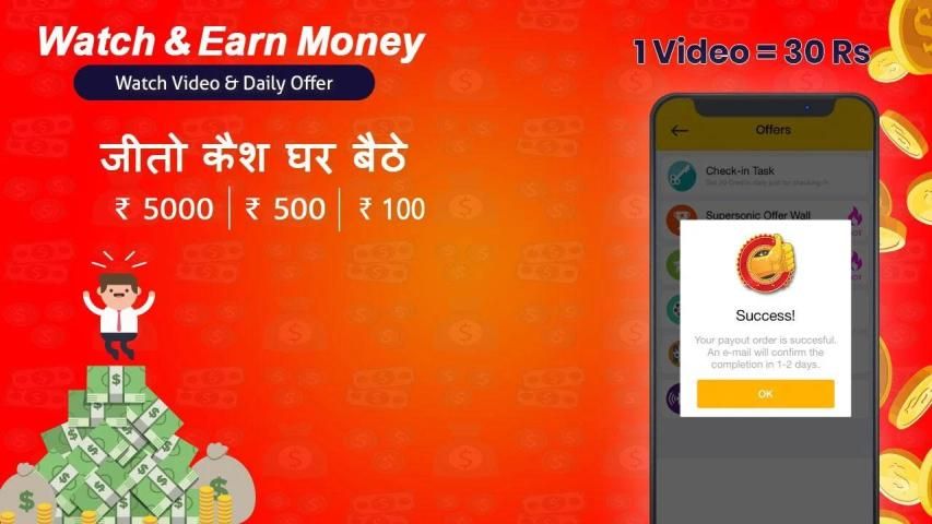 ऑनलाइन पैसा कमाएँ: वीडियो देखें और असली नकद पैसा जीतें