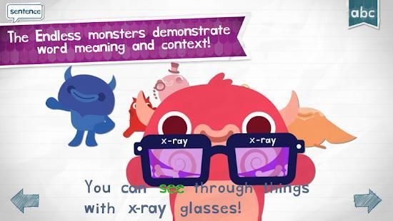 Kids will have a blast learning sight words and their context and usage with the adorable Endless monsters. Each word features an interactive word puzzle with letters that come alive, and then a sentence puzzle with words that become what they describe. See the word "dog" as a barking dog, and the word "up" reach for the sky!