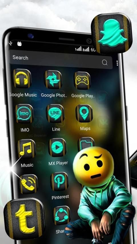 • Face Emoji Theme included many HD customized Icons of popular apps, social app like (Snapchat,imo,viber,twitter etc) System app icons.