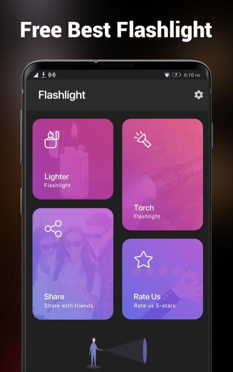 Flashlight Free - Torch LED Light 2020 application has a lighter flashlight that lights up your phone. It looks like a lighter and its lighter design is make your phones LED flashlight even more beautiful. You can also customize the lighter design with your favorite picture.