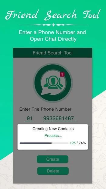 चैट के लिए मित्र खोज: मित्र खोज एप व्हाट्सएप एप्लिकेशन और अन्य चैट ऐप्स पर एक लड़की मित्र को खोजने के लिए यादृच्छिक संपर्क फोन उत्पन्न करने के लिए सरल उपकरण है!