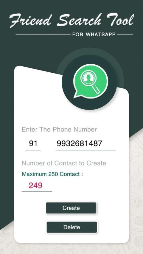 Friend Search For Chat : Friend Search App is simple tool to generate random Contacts phone to find a boy friend ??or girl friend on WhatsApp application And Other Chat Apps!