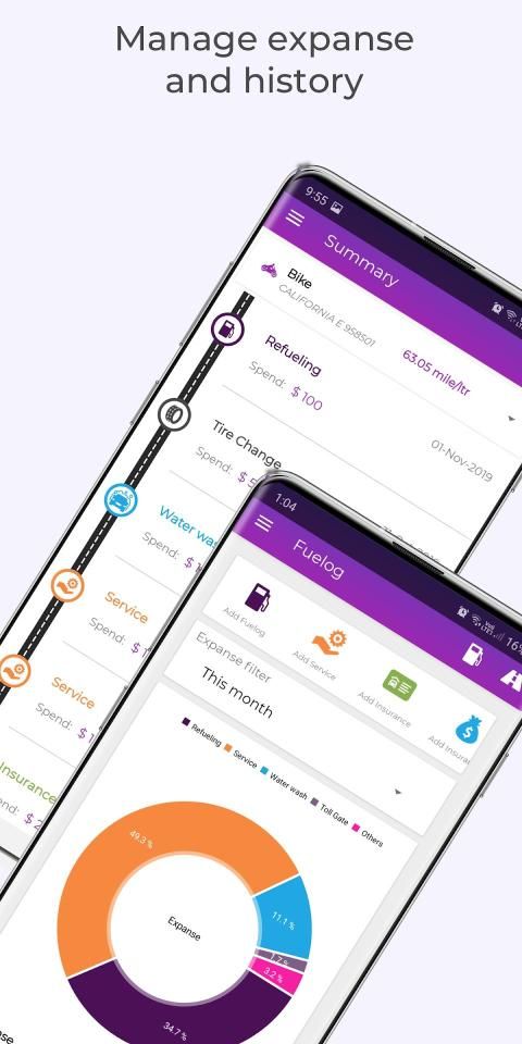 Mileage Calculator, expense manager, fuel log, fuel tracker, expense, reminder, insurance, service, car log, fuelog, gas log, car management, bike management, car care.