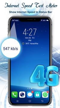 3 जी, 4 जी, 5 जी नेटवर्क के साथ स्टेटस बार में एक वास्तविक समय इंटरनेट स्पीड टेस्ट है।