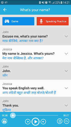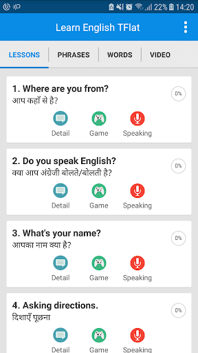 ऑडियो सुनना, सबक खत्म करने के लिए गेम खेलें, आखिर में खुद को बोलने का प्रयास करें।
