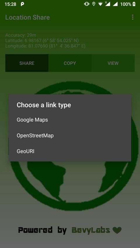 This App is focused on sharing the Location to persons anywhere anytime. These Locations have the facility to Google Maps, OpenStreetMap and GeoURI.There is another facility to visible the user's Longitude and Latitude position at realtime.