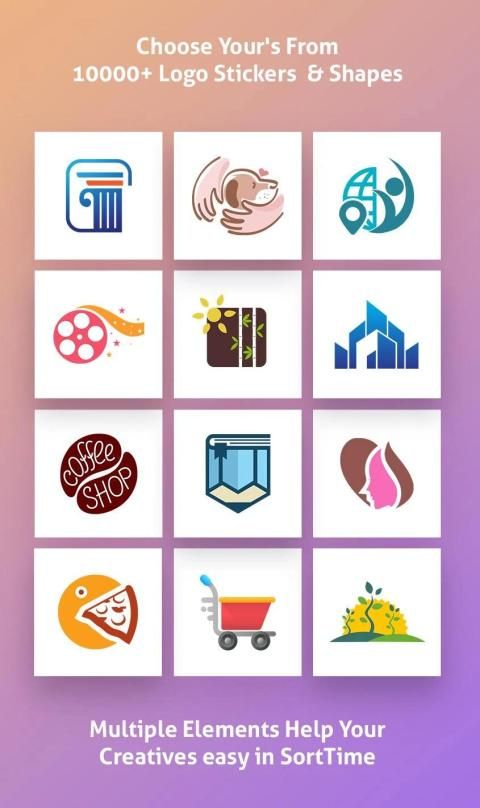 लोगो निर्माता में कुछ ही समय में एक मूल लोगो बनाने के लिए वर्गीकृत कला (स्टिकर), ग्राफिक तत्वों, आकृतियाँ, पृष्ठभूमि और बनावट का एक विशाल संग्रह शामिल है।