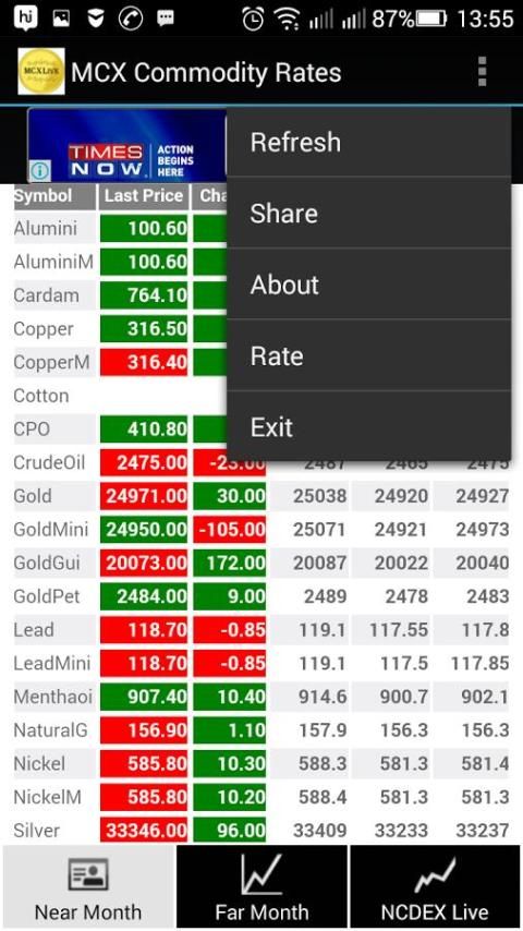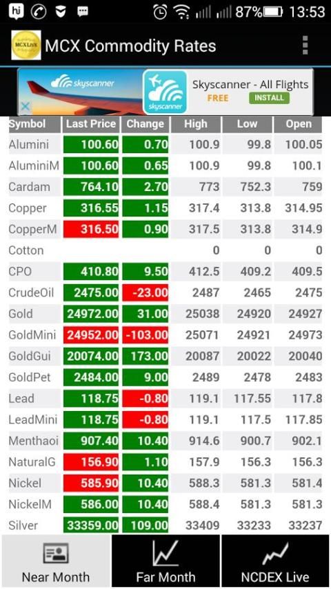 Track the price of latest market anytime, anywhere. It covers assets from MCX and NCDEX exchanges. Through this app you can get to know about far month prices and near month prices of MCX.