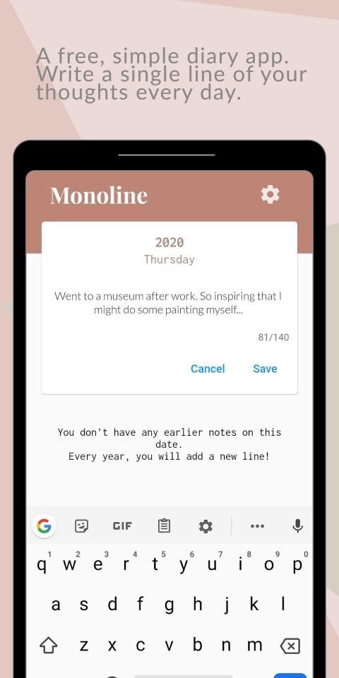 Monoline is a no-fuss diary application that will help you get in the habit of jotting down one line a day.