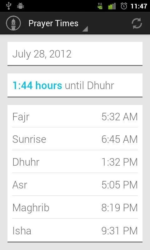 - App does not immediately refresh times after a phone reboot if automatic location is enabled. Wait a few minutes and refresh app.