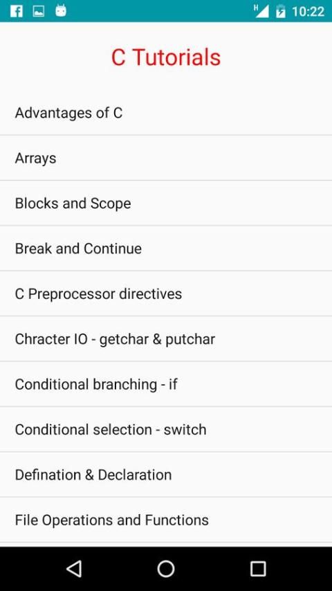 यह एप्लिकेशन ट्यूटोरियल और सी, सी ++, जावा, एचटीएमएल, सीएसएस, जावास्क्रिप्ट, PHP एंड्रॉयड से संबंधित कार्यक्रमों प्रदान करता है और के लिए बुनियादी प्रोग्रामिंग सीखने के लिए अच्छा है।