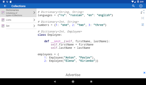 विशिष्ट कोड उदाहरणों पर पायथन 3 वाक्यविन्यास सीखना।एक सब्सट्रिंग कैसे प्राप्त करें?एक सामान्यीकृत विधि कैसे घोषित करें?पाइथन के लिए ये और 250 से अधिक कोड नमूने एप्लिकेशन में उपलब्ध हैं।