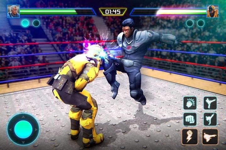 Enjoy Robot gym fighting tournament game and club training, how to fight face to face in the ring, unarmed, with your punches and kicks how to use yourself with amazing skill to block the enemy kicks and punches is also an essential part of martial arts. The real boxing experience in your hand, make jab, hook, and upper-cut feel natural and fun. Use quick reflexes and clever moves, unleash ferocious punches and combos, defeat all rivals and become the king of gym clubs ring. Realistic slow-motion fighting effects of punch boxing fights in this robot fighting game are awesome. Animations of fighting and death are more like real-world wrestling or rumble fighting tournaments. Be careful during a fight with corrupt powers of the Robot Gym training clubs and send them toward their back destination of the Gym fighting tournament.