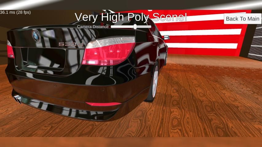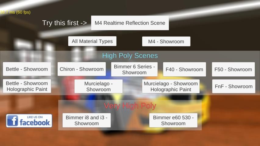 यह एप्लिकेशन एक खेलने योग्य वीडियो गेम नहीं है, जहां आप कार चला सकते हैं! यह यूनिटी में एक नए वाहन शेडर पैक के प्रदर्शन उद्देश्यों के लिए बनाया गया था, इस ऐप में आप इसका परीक्षण कर सकते हैं कि यह आपके उपकरणों पर कैसे चलता है। आप स्क्रीन के ऊपर बाईं ओर एक एफपीएस मीटर पा सकते हैं।