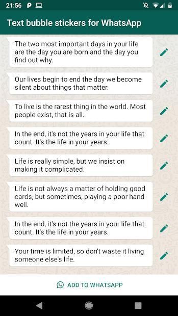Create WhatsApp stickers that look like chat bubbles. Customize text