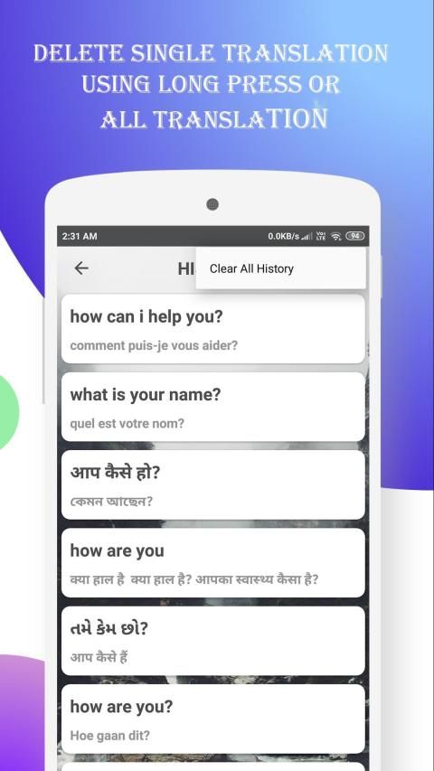 • लंबे प्रेस का उपयोग करके एकल अनुवाद हटाएं।