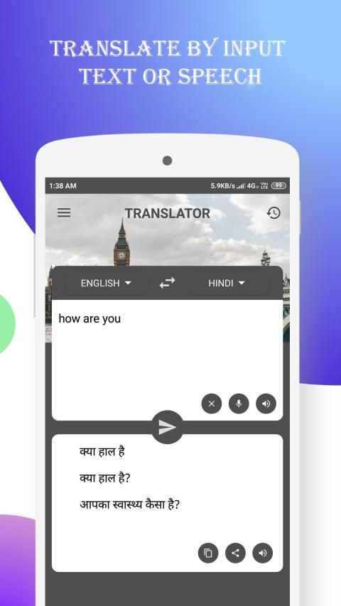 ट्रांसलेटर ऐप 100 से अधिक भाषाओं में वॉयस और टेक्स्ट ट्रांसलेशन का समर्थन करता है।