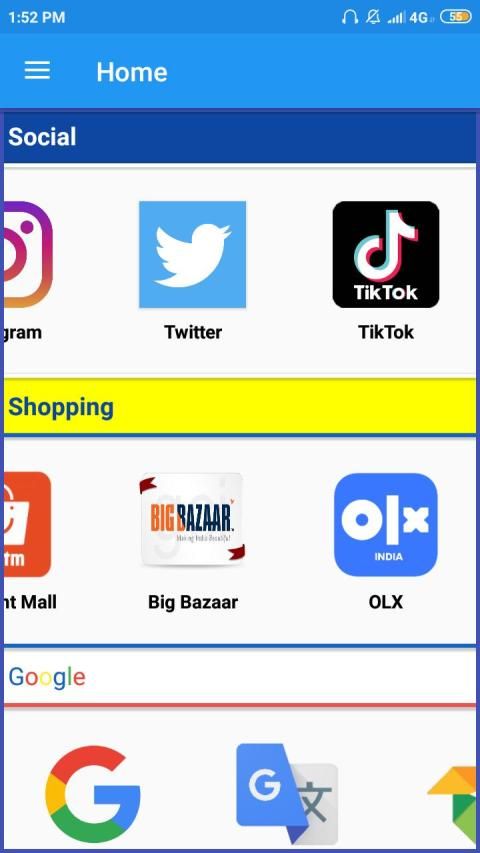 इस एप्लिकेशन में आप फेसबुक इंस्टाग्राम ट्विटर यूट्यूब गूगल और अधिक एप्लिकेशन का उपयोग कर सकते हैं