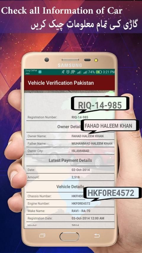 Punjab, Sindh and KPK. Download car registration Verification app and check information of your Car. Car registration verification app is free to download and easy to use for everyone.