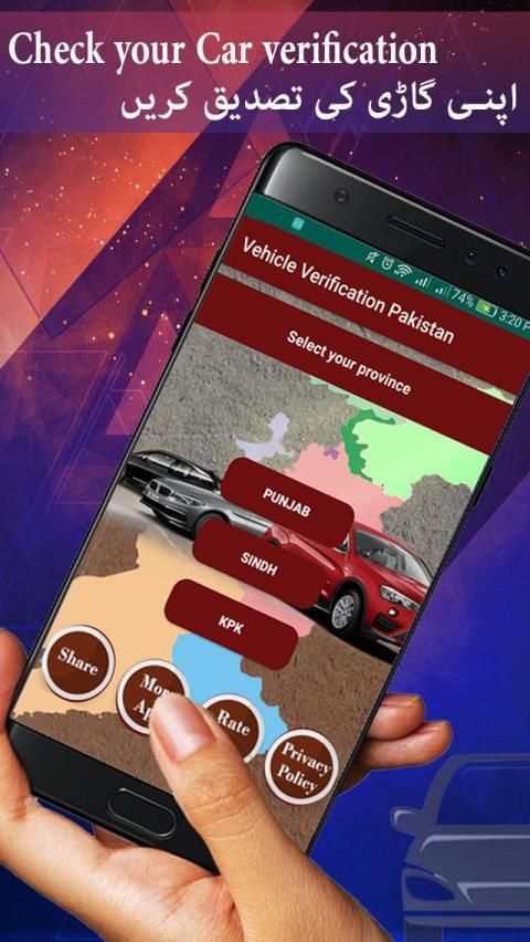 पंजाब, सिंध और केपीके। कार पंजीकरण सत्यापन ऐप डाउनलोड करें और अपनी कार की जानकारी की जाँच करें। कार पंजीकरण सत्यापन ऐप डाउनलोड करने और सभी के लिए उपयोग करने में आसान है।