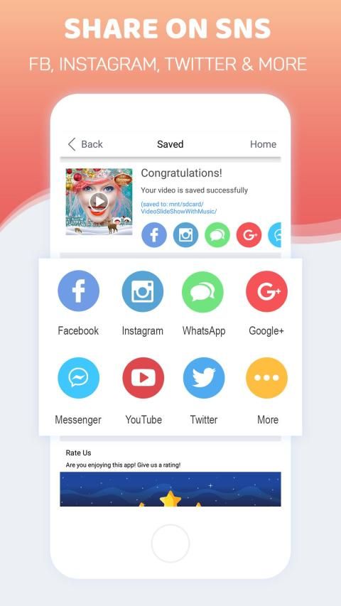 नोट: आपके वीडियो कहानियों "sdcard / VideoSlideshowMakerWithMusic / OutVideo" में सहेजा