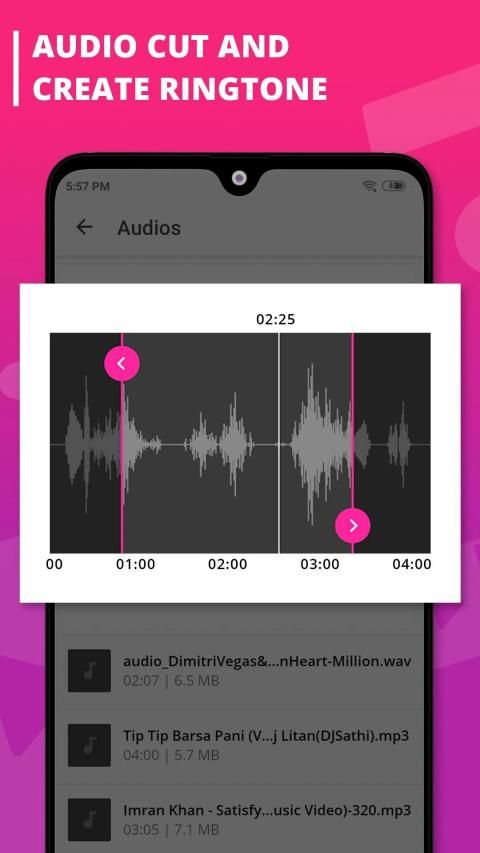 रिंगटोन निर्माता ऑडियो कटर फ़ीचर के साथ।