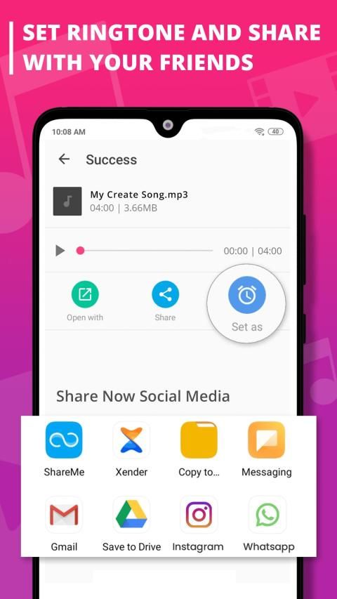 अलार्म, रिंगटोन और अधिसूचना ध्वनि के रूप में सेट करें।