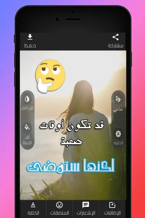 यह चित्रों को डिजाइन करने और अंग्रेजी और अरबी फोंट में चित्रों पर लिखने के लिए अनुप्रयोगों का सबसे सुंदर है और एक पेशेवर तरीके से और छवि पर रूप और अद्वितीय पोस्टर इसे छवि के डिजाइन के लिए एक एकीकृत अनुप्रयोग बनाते हैं।