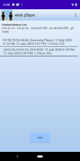 संपर्क इतिहास उन सभी उपयोगकर्ताओं को प्रदर्शित करता है जो 6 फीट की दूरी के भीतर थे।