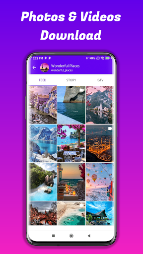 आप इंस्टाग्राम वीडियो और फोटो को सहेज सकते हैं या डाउनलोड कर सकते हैं और इंस्टाग्राम पर पोस्ट कर सकते हैं। अपनी प्रोफ़ाइल पर आसानी से इंस्टाग्राम के अपने पसंदीदा वीडियो पोस्ट को डाउनलोड करें और आप इंस्टाग्राम रिपॉस्ट कर सकते हैं आप किसी भी समय डाउनलोड की गई फोटो और वीडियो का आनंद ले सकते हैं, या इसे दूसरों के साथ साझा कर सकते हैं।