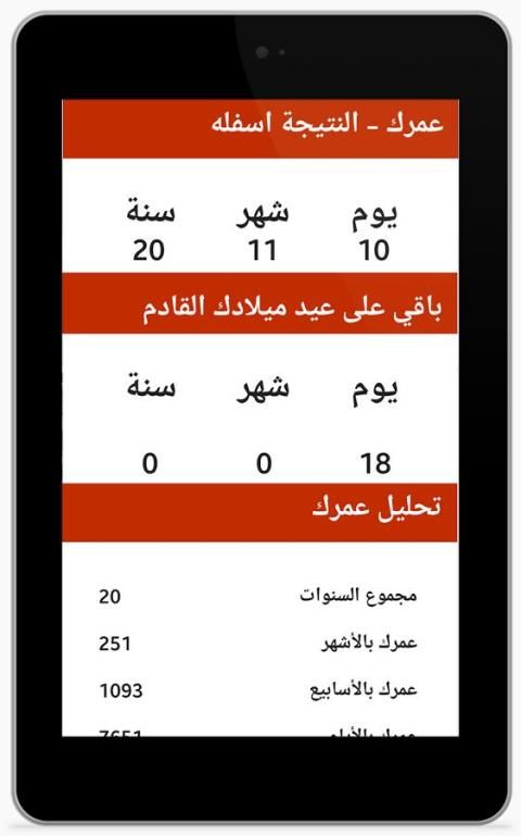 अब अपनी उम्र की गणना और जानते हैं कि जब उस दिन मैं पैदा हुआ था और Hecda पैदा होगा नहीं Mjaddada सवाल किमी ओम्री अकाउंट की उम्र में दादा ने अपनी गणना में सटीक के आवेदन और अपनी उम्र के बारे में आपको जानकारी देता है और क्या आवेदन अलग उम्र Palmelada गणना करने के लिए है और आप भी वर्ष जन्म के हिजरा साल देता है, और आप अपने जन्मदिन दावत के लिए कितना अवशेष अगला
