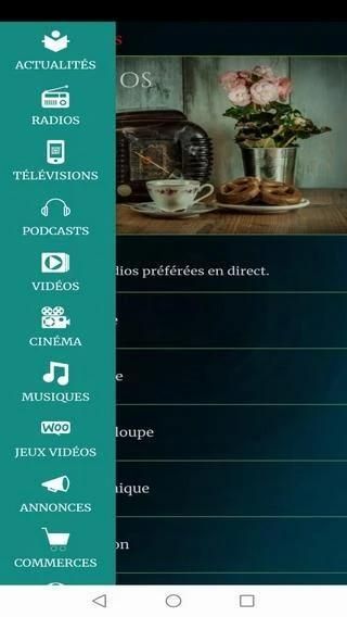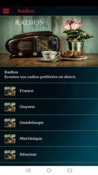 • • सभी फ्रेंच रेडियो स्टेशनों के लिए सुनो। फ्रांस रेडियो, गुयाना रेडियो, मार्टीनिक रेडियो, ग्वाडेलोप रेडियो, रीयूनियन रेडियो, आदि।