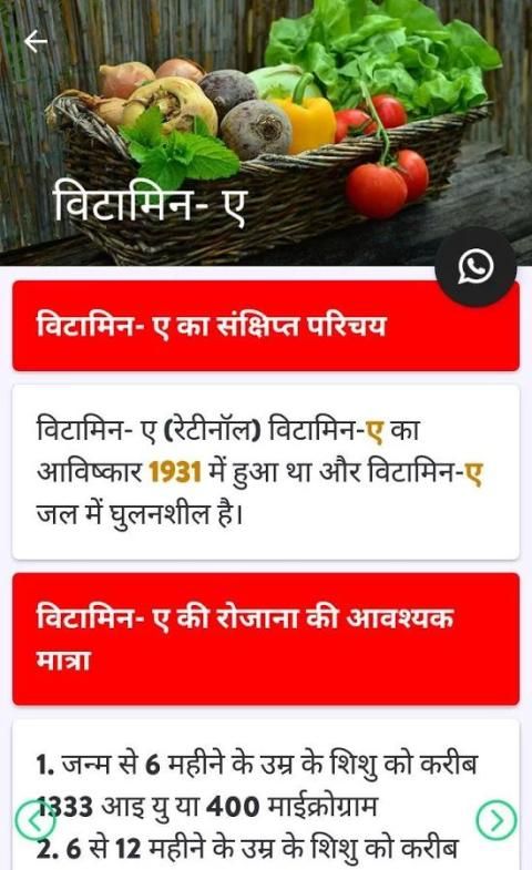 ★ यह एप्लिकेशन सभी विटामिन और प्रत्येक विटामिन के दैनिक आहार का सेवन के बारे में पूरी जानकारी देता है।
