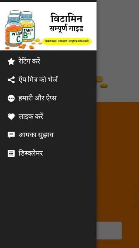यहाँ इस ऐप्लिकेशन में आप 13 सबसे लोकप्रिय विटामिन, प्रत्येक विटामिन के दैनिक आहार का सेवन, पूरक आहार, प्रत्येक विटामिन के लिए स्रोतों पर, गुणवत्ता की जानकारी गहराई में मिल जाएगा।