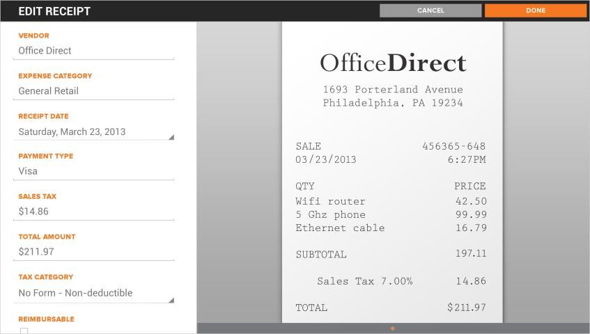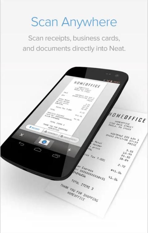 • Scan receipts, business cards, and any other document using your phone’s camera.