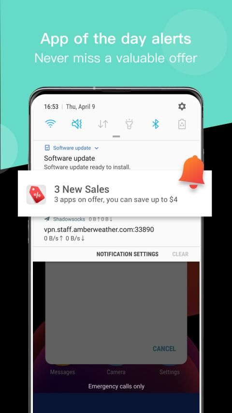दैनिक बिक्री एप्लिकेशन और गेम के लिए आपका नया निजी सलाहकार है। एप्लिकेशन, गेम, वॉलपेपर और आइकन पैक की एक दुनिया का अन्वेषण करें: उन्हें मुफ्त में अपना बनाएं या उन्हें बिक्री पर प्राप्त करें। सीमित समय के ऑफ़र के साथ अपने पैसे की बचत करते हुए, हर दिन नए उपयोगी ऐप और मज़ेदार गेम खोजें। हमारे ऐप डील ऐप का उपयोग सबसे अच्छे ऐप की खोज के लिए भी किया जा सकता है, और आपको कुछ उपयोगी चीजें मिल सकती हैं जिन्हें आप बिना कुछ भुगतान किए उपयोग कर सकते हैं।