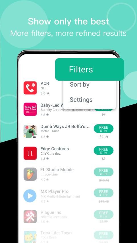 ✓ You can order the apps by newest, downloads, price, rating or expiration date.