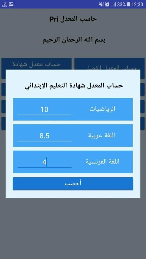 كل ما يتطلب التطبيق هو ملئ علامات التلاميذ في الخانات الموجودة به فيقوم التطبيق بالحساب حسب الطريقة التي يتم بها الحساب في الإبتدائيات الجزائرية